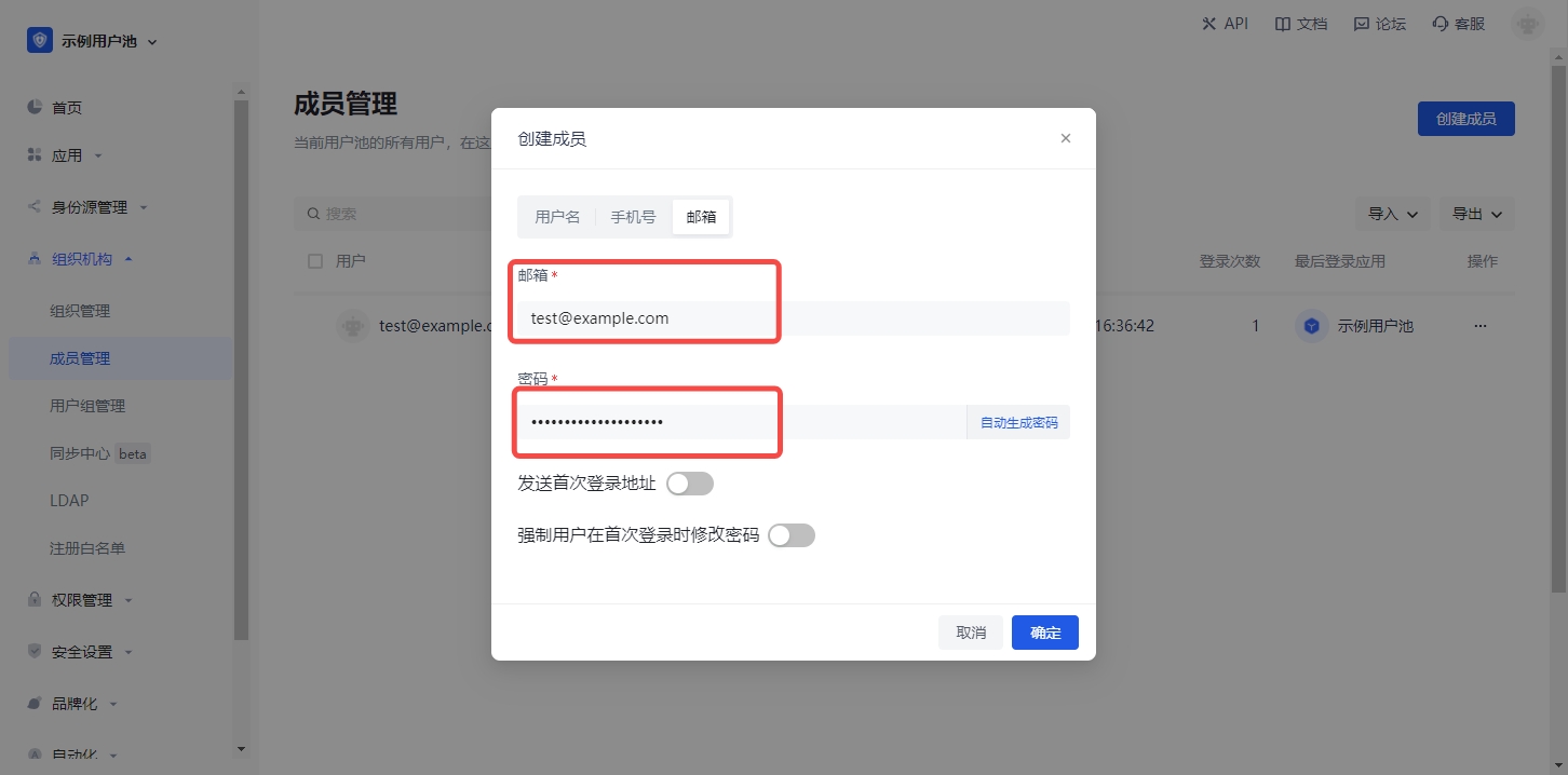 2. 创建一个用户,用于登录 Authing 应用。