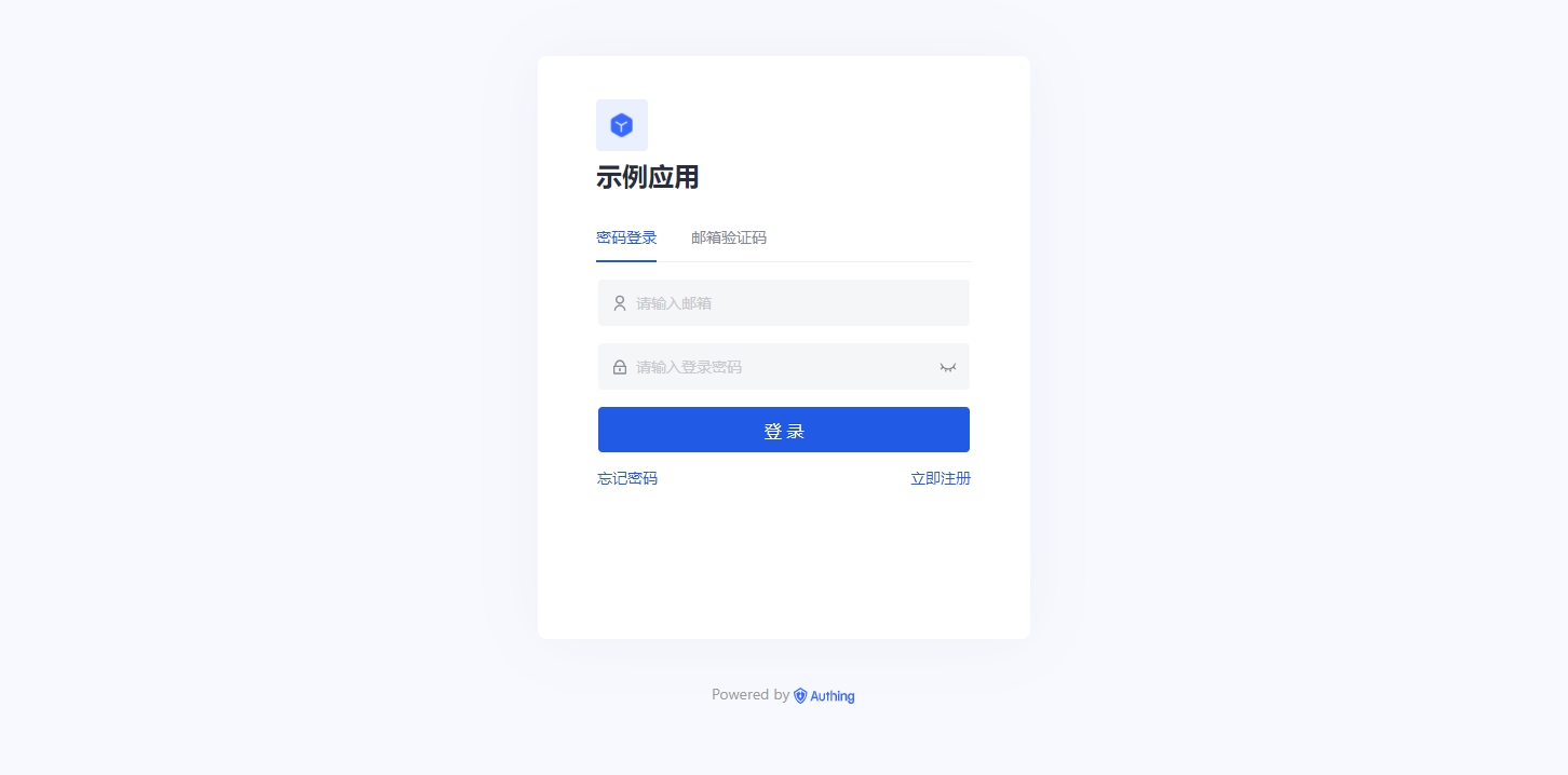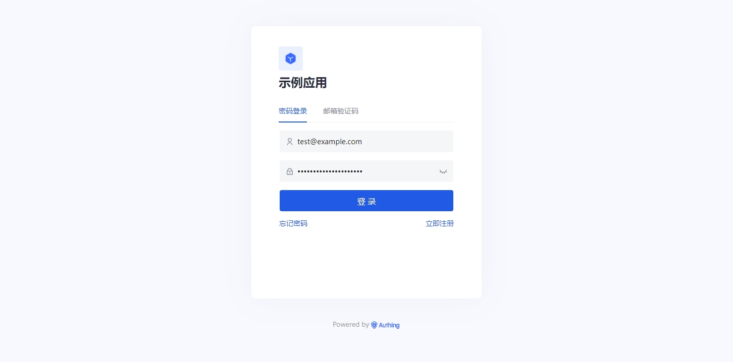 5. 输入上述创建的用户和密码登录 Authing 应用。