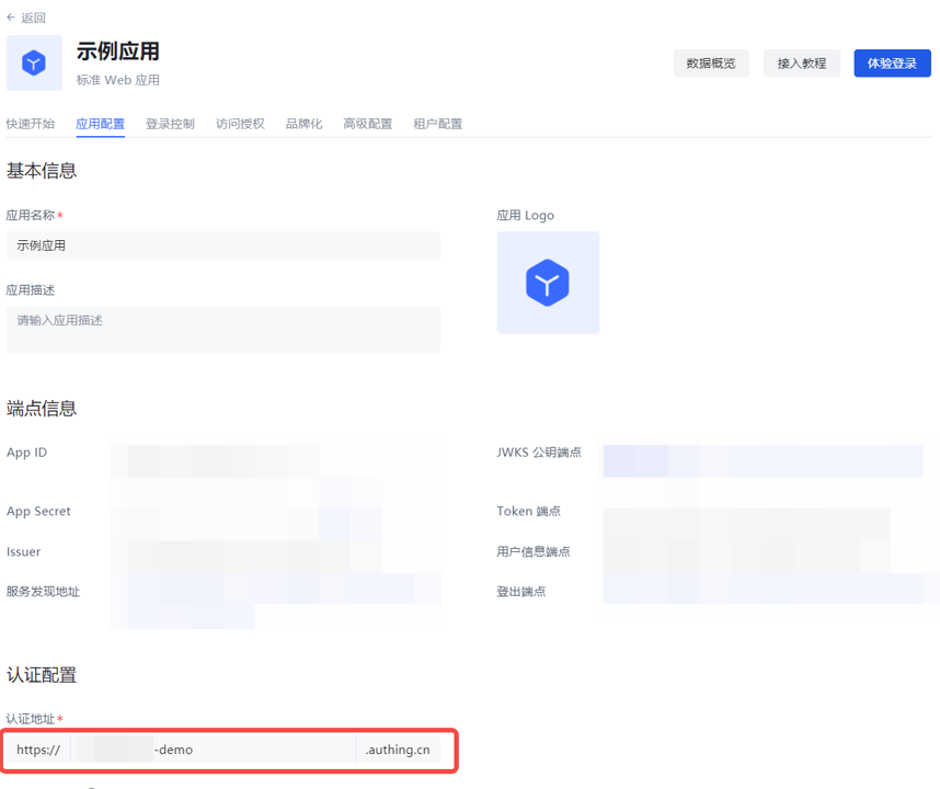 - 用户返回应用列表,点击进入自建应用,复制 应用配置 下 认证地址。