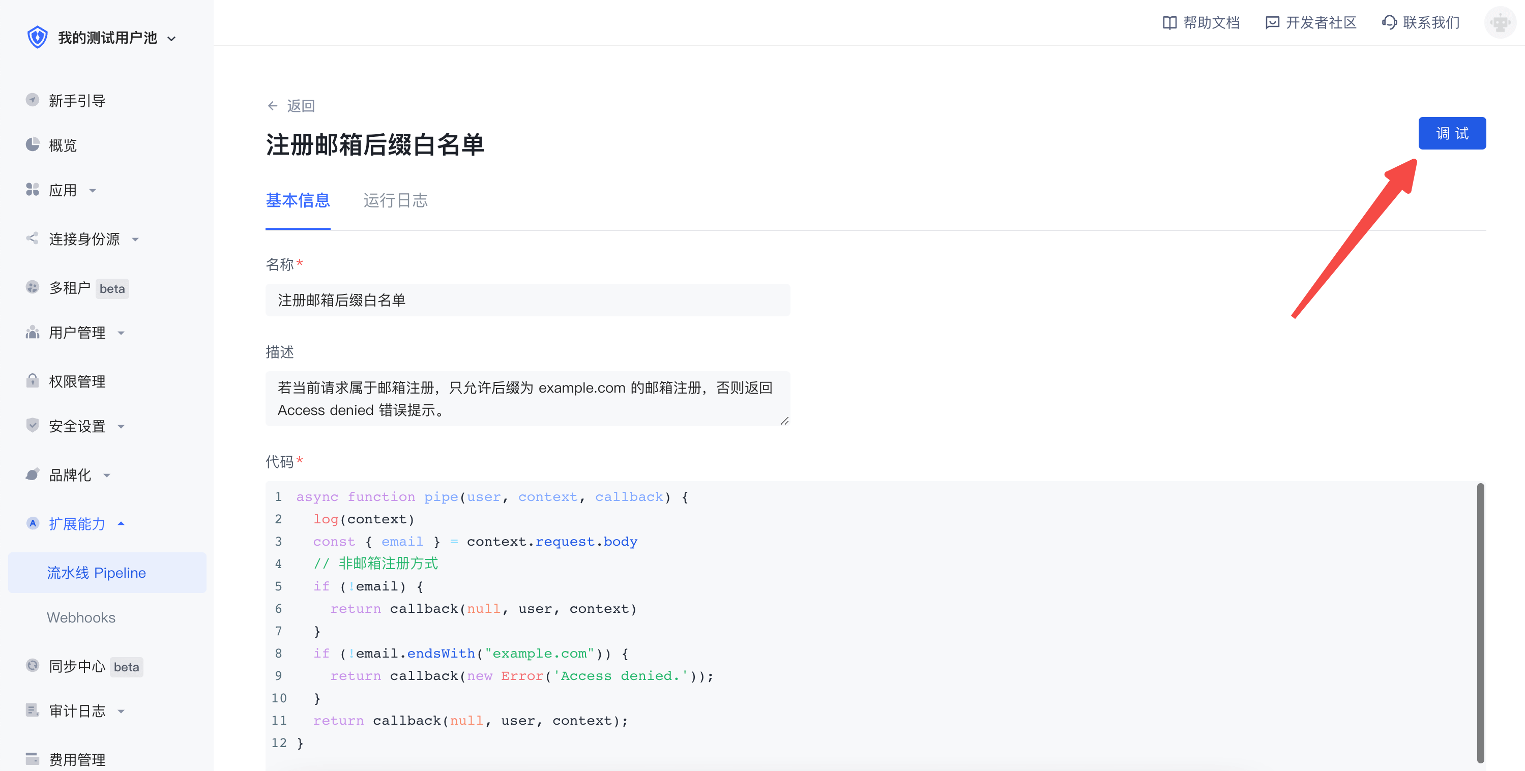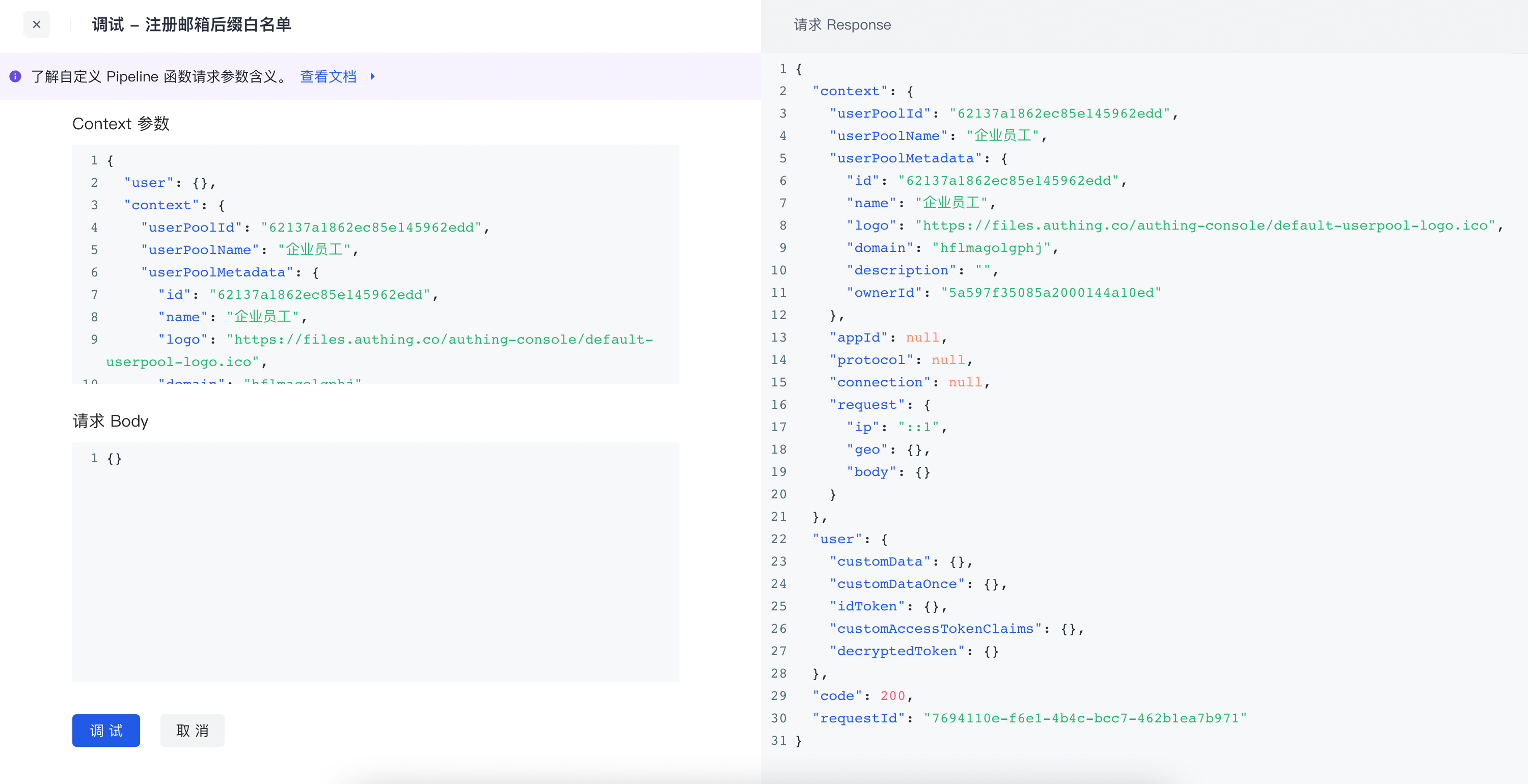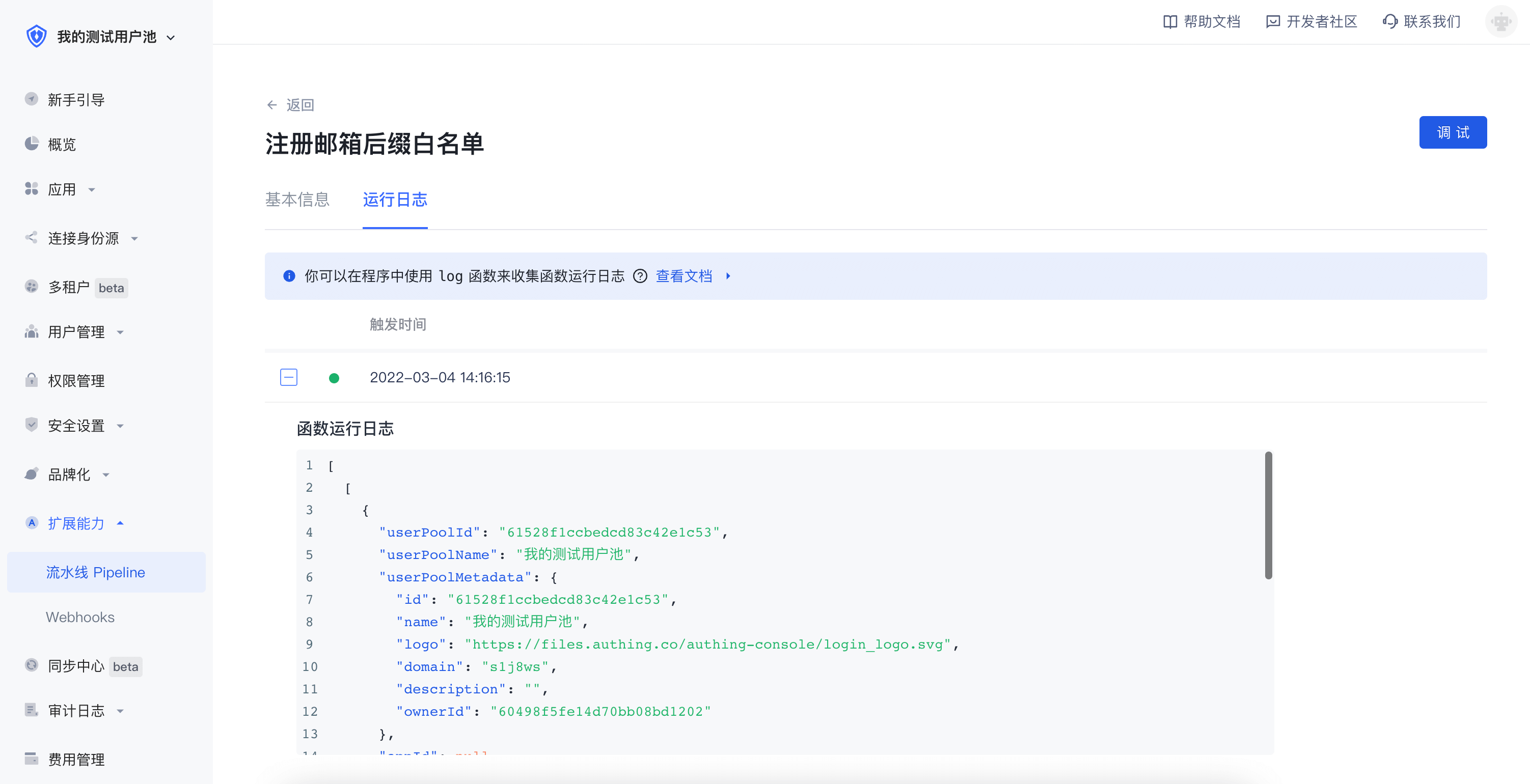 本文讲述如何使用 Authing 控制台调试 Pipeline 函数。