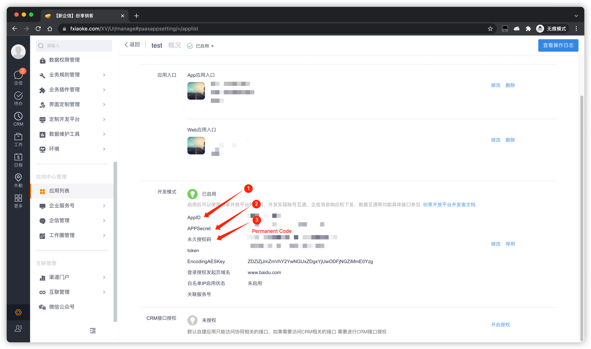 获取纷享销客配置项和权限