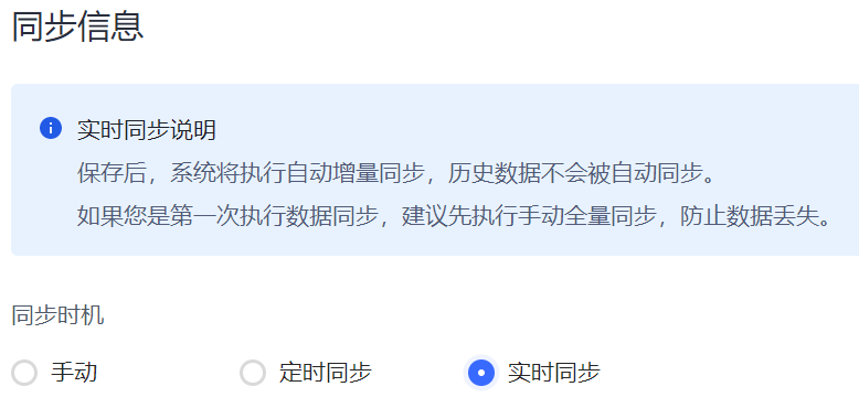 - 如果是首次执行数据同步,建议先执行手动同步,防止数据丢失。