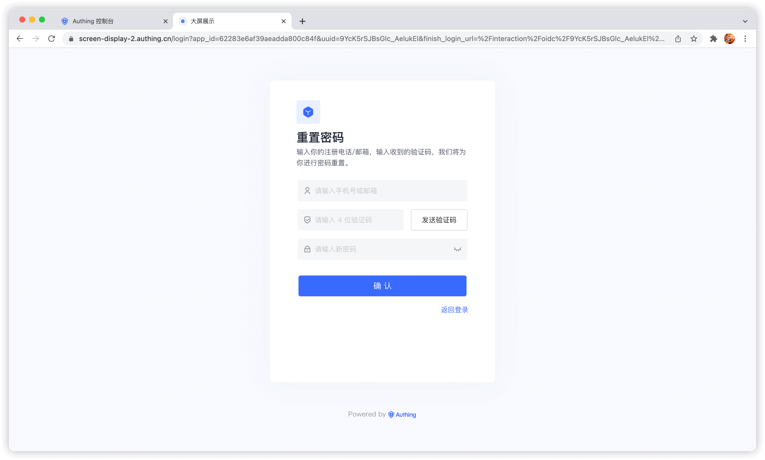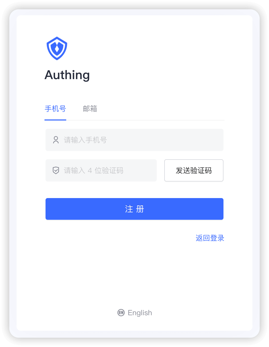 Authing 为开发者提供了一个内置的一应俱全、美观、高度配置化的登录表单,你可以在此体验 (opens new window) (以下我们简称此登录表单为 Guard),地址为 https://<YOUR_DOMAIN>.authing.cn/: