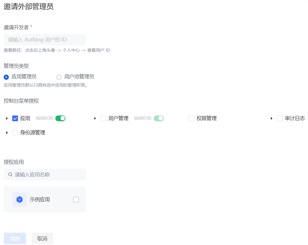 邀请外部管理员
