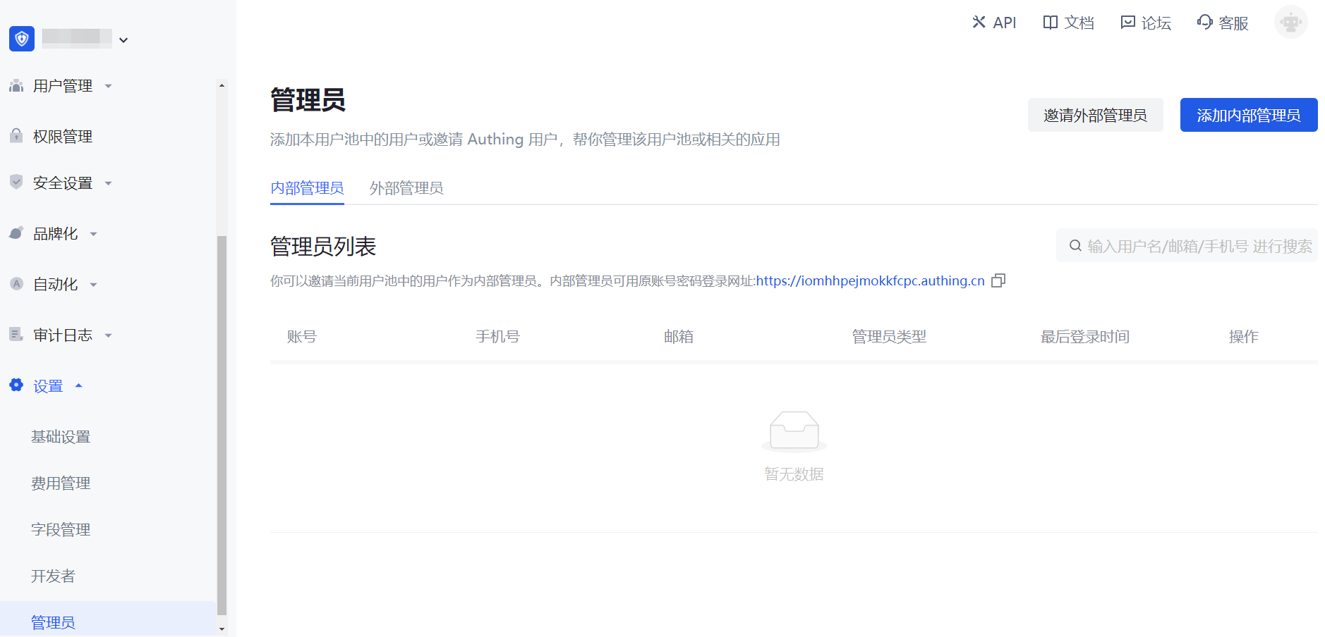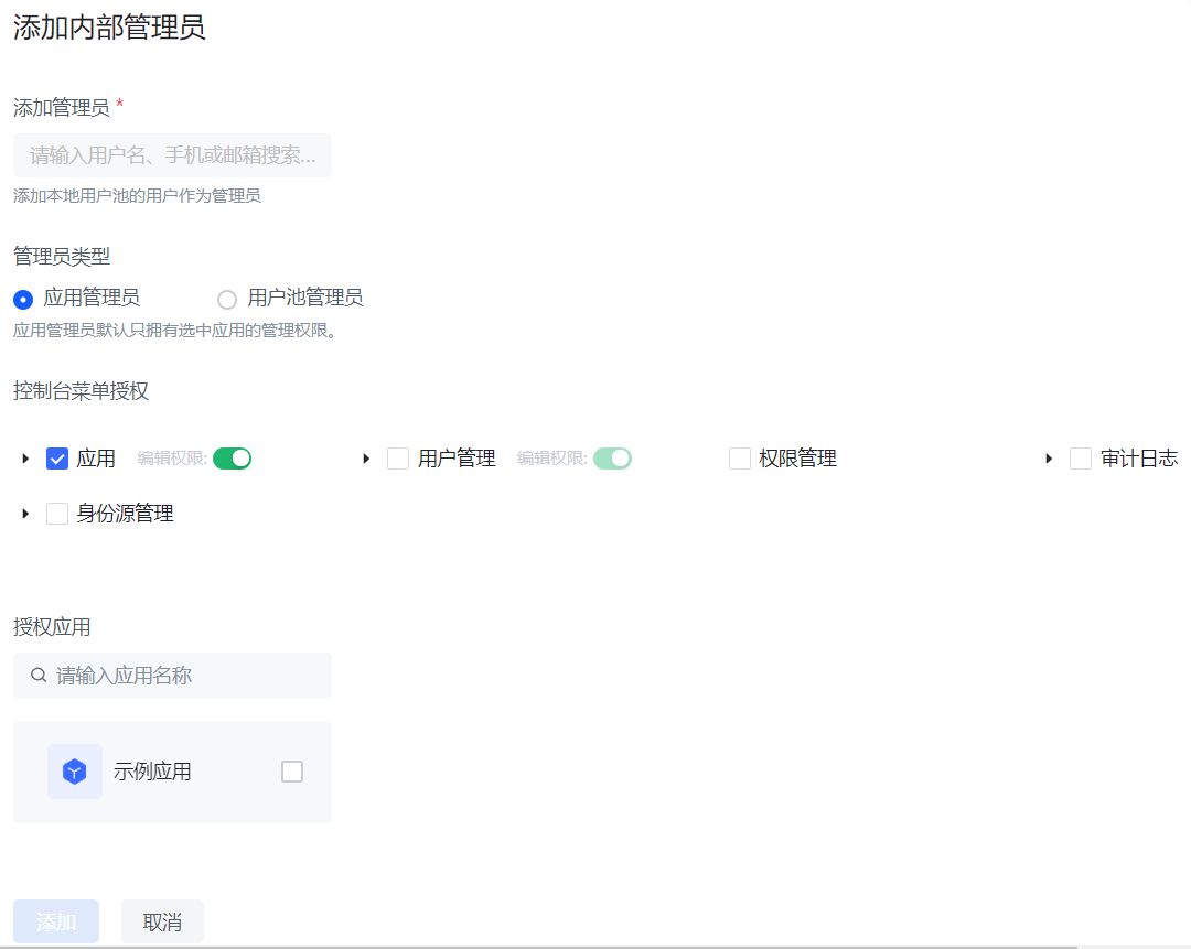 添加内部管理员