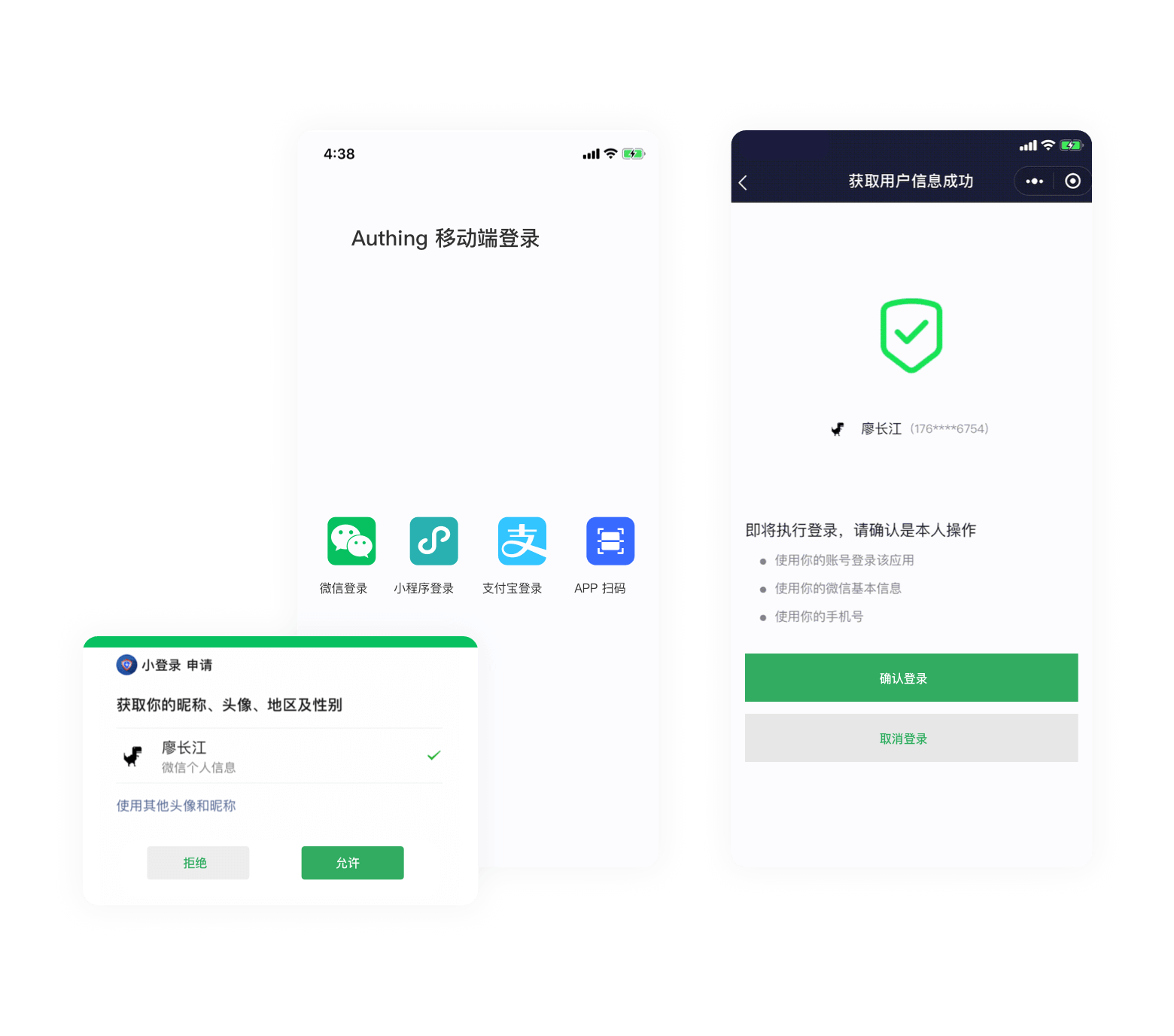 移动 APP 拉起小程序登录是建立移动端以手机号为中心用户体系的关键方式,Authing 通过 SDK 为开发者大大降低了开发的复杂度,一行代码即可通过移动端获取用户在小程序中授权的手机号,建立以手机号码为基础的账号体系。