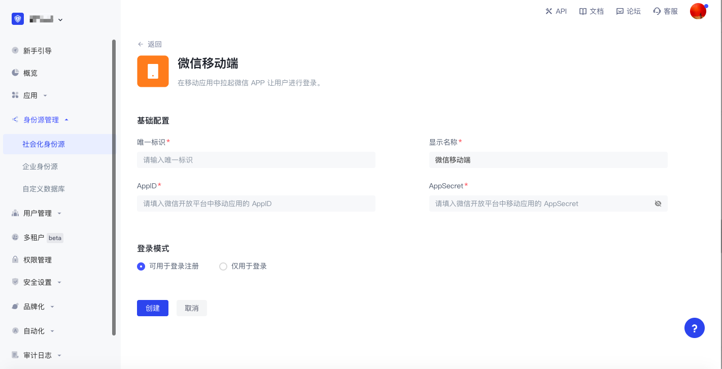 ¶ 在 Authing 实现微信登录能力