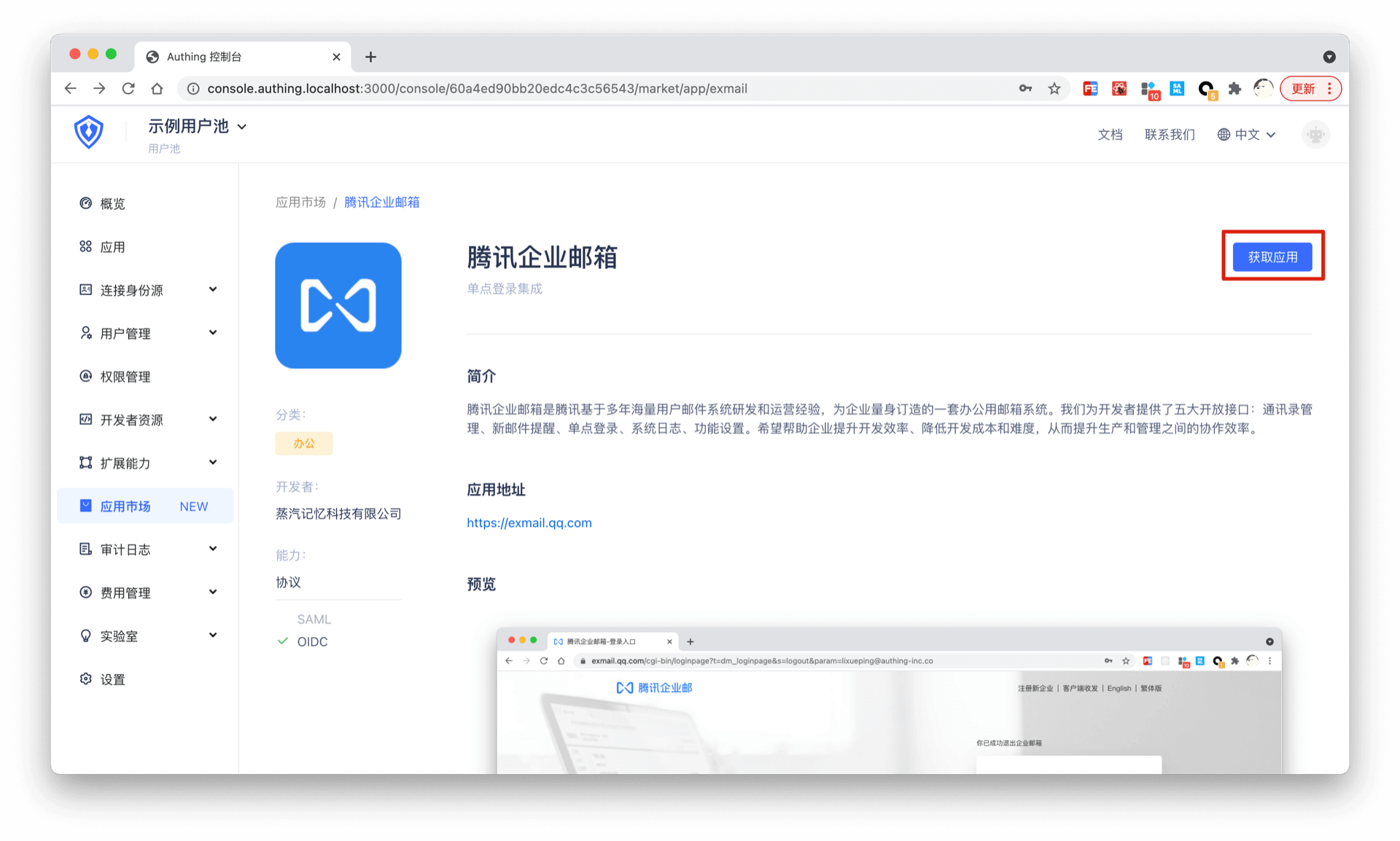 使用 Authing 登录腾讯企业邮箱