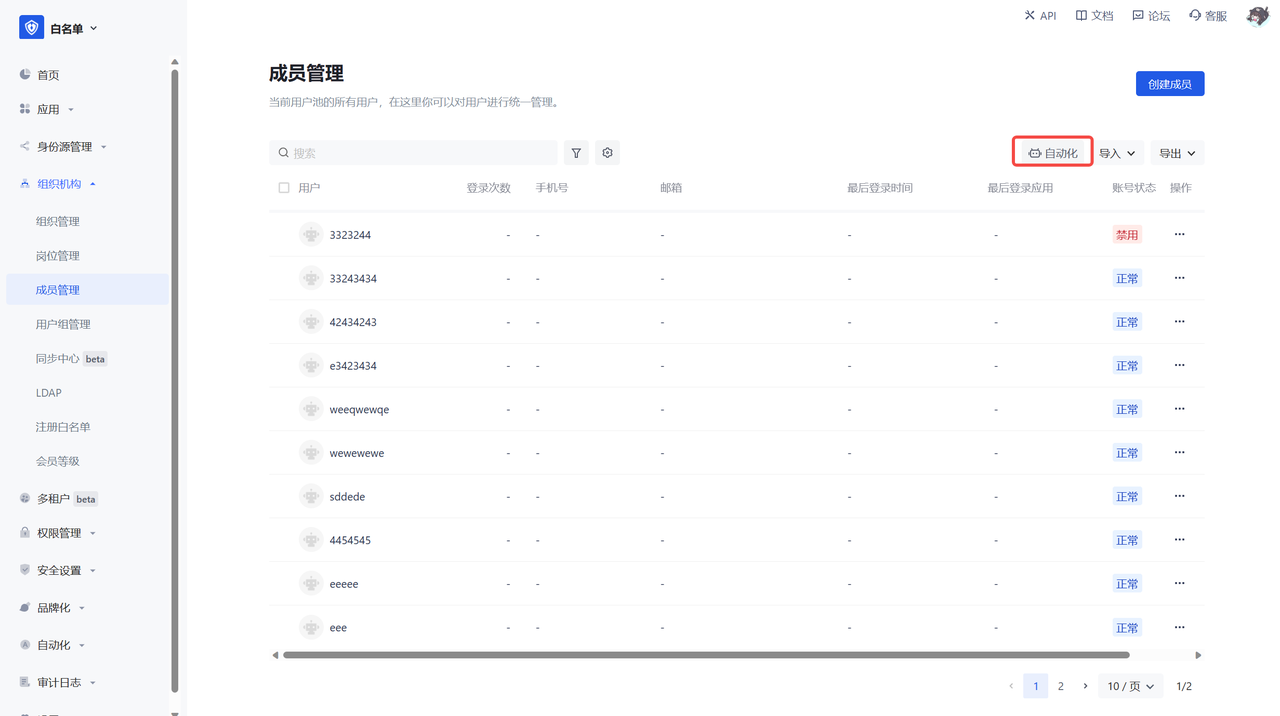 - 特别注意:只有同时具有身份自动化权益才会展示身份自动化入口,若只有元数据权益不展示