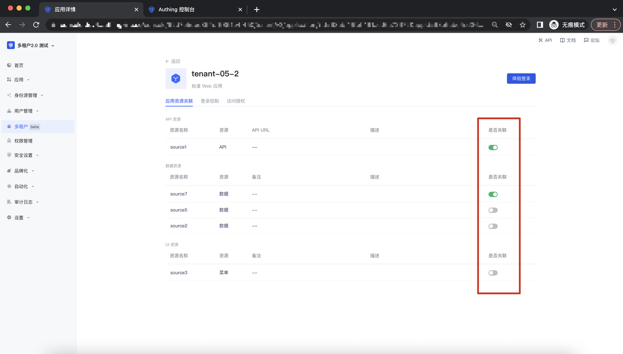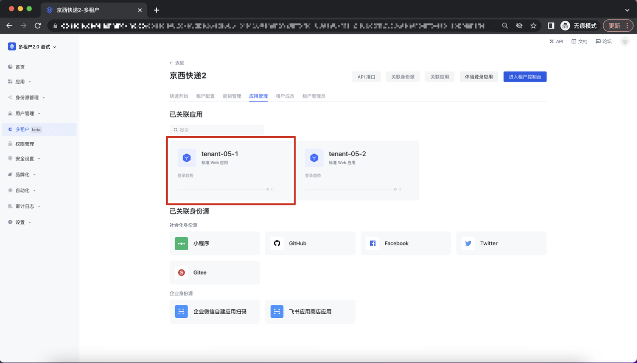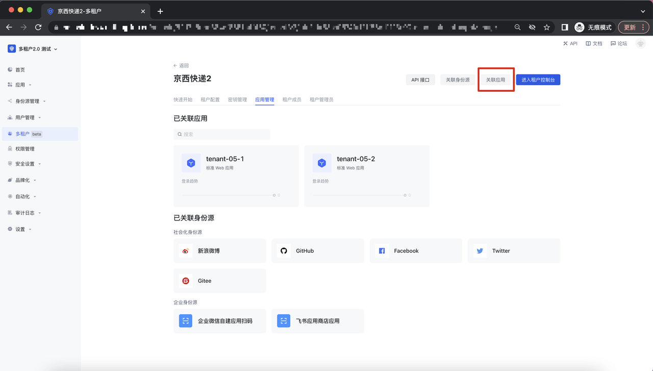 ¶ 配置租户关联应用