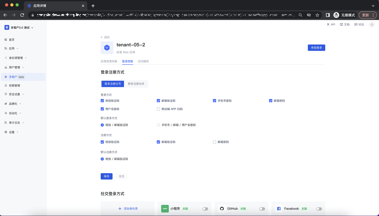 可以在该页面进行应用在该租户下的 Guard 登录配置: