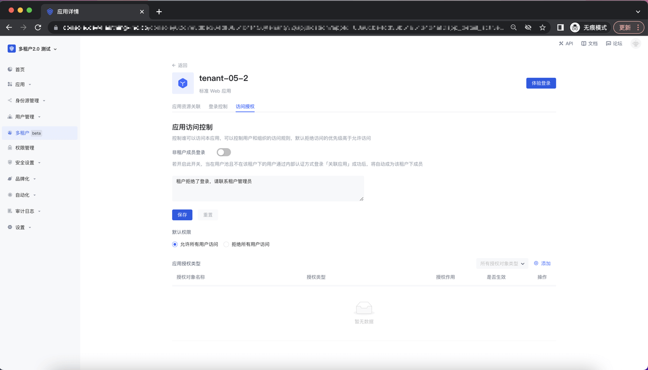 可以在该页面对租户下的成员进行访问授权控制: