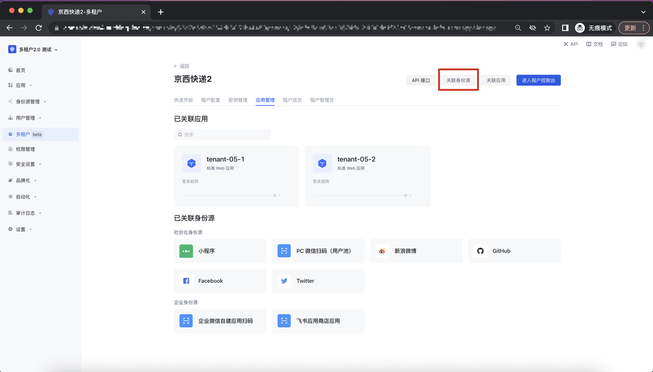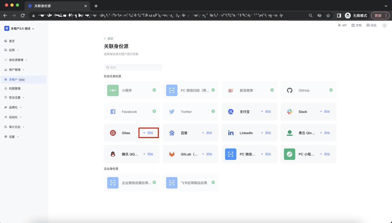 点击「添加」即可将该身份源与租户进行关联;