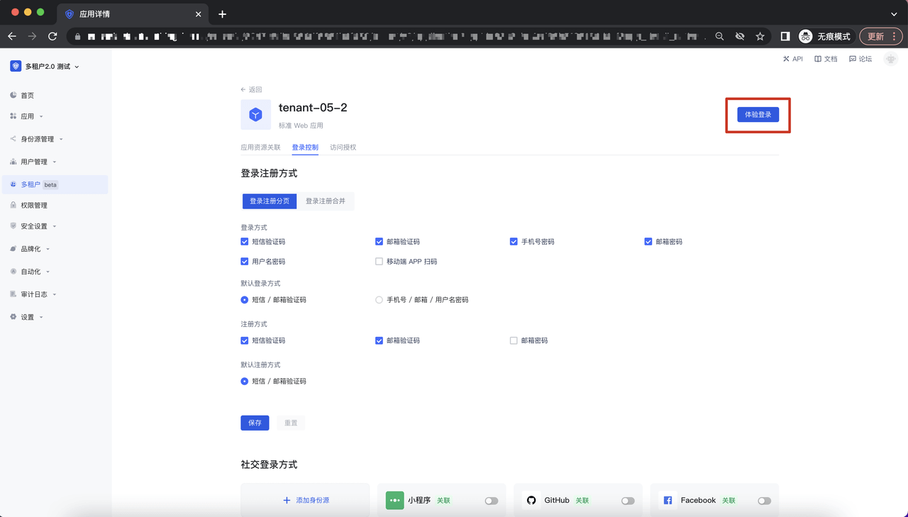 点击应用详情页面的右上角的「体验登录」,进入到体验登录 Guard 界面: