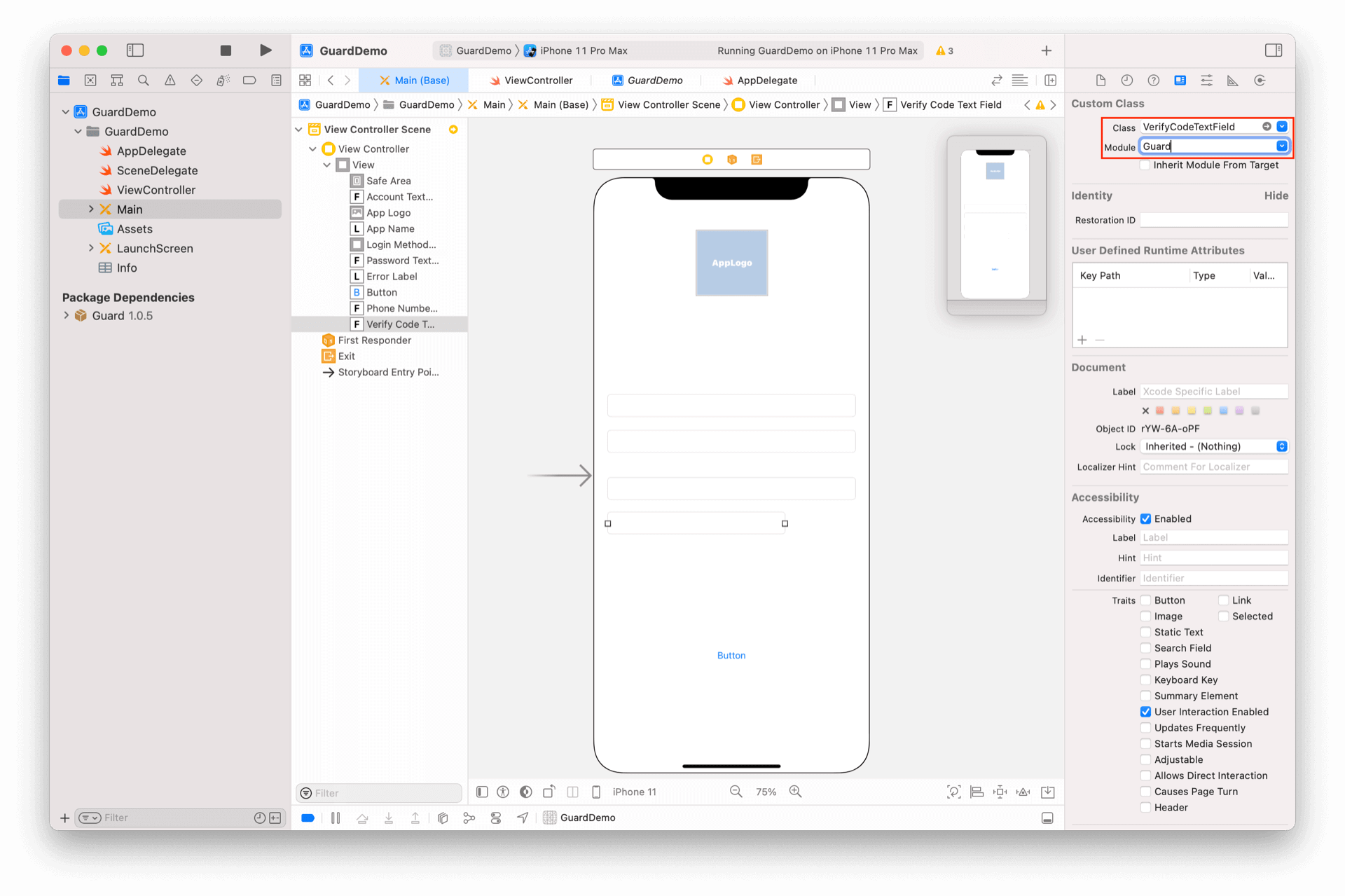 放置一个 TextField,将其类型改为 VerifyCodeTextField