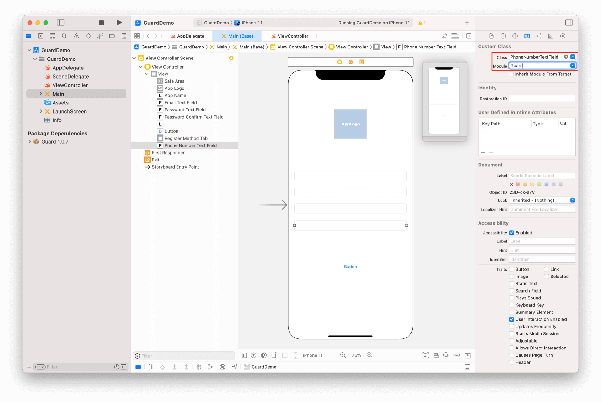 放置一个 TextField,将其类型改为 VerifyCodeTextField