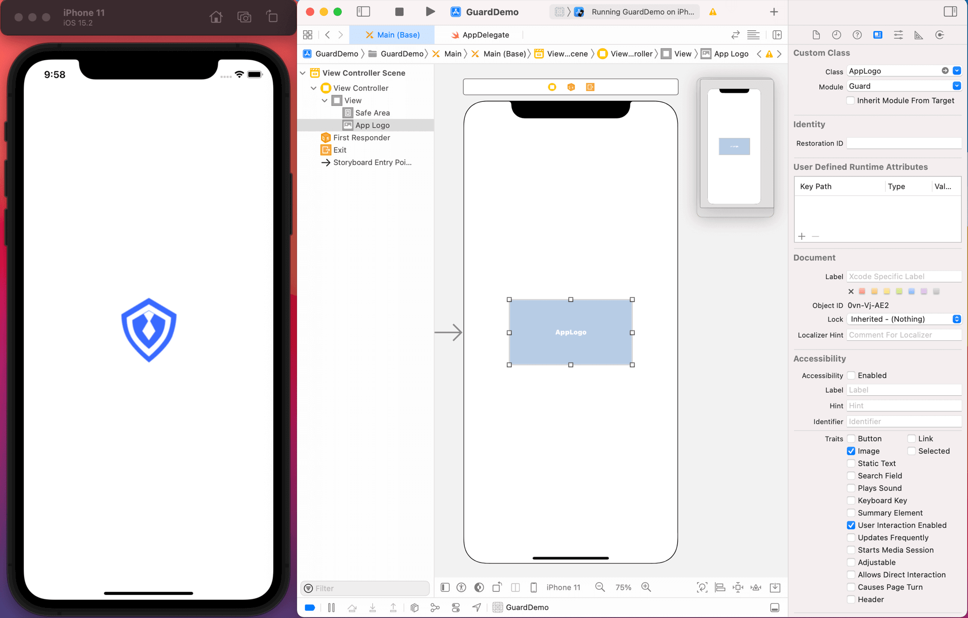 注意 Module 为 Guard。这是 iOS 模块化机制要求的。所有 Authing 提供的超组件都在 Guard 模块里面,后续不再赘述