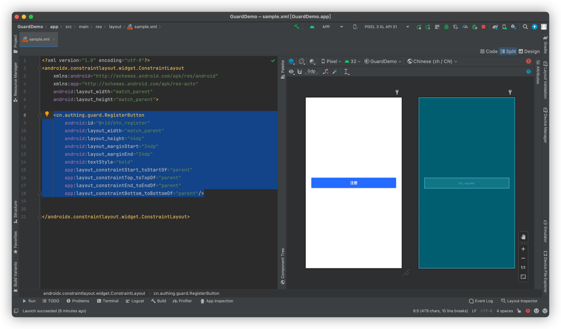 当用户点击此组件时,它会根据当前页面的其他 Guard 组件信息发起注册请求。