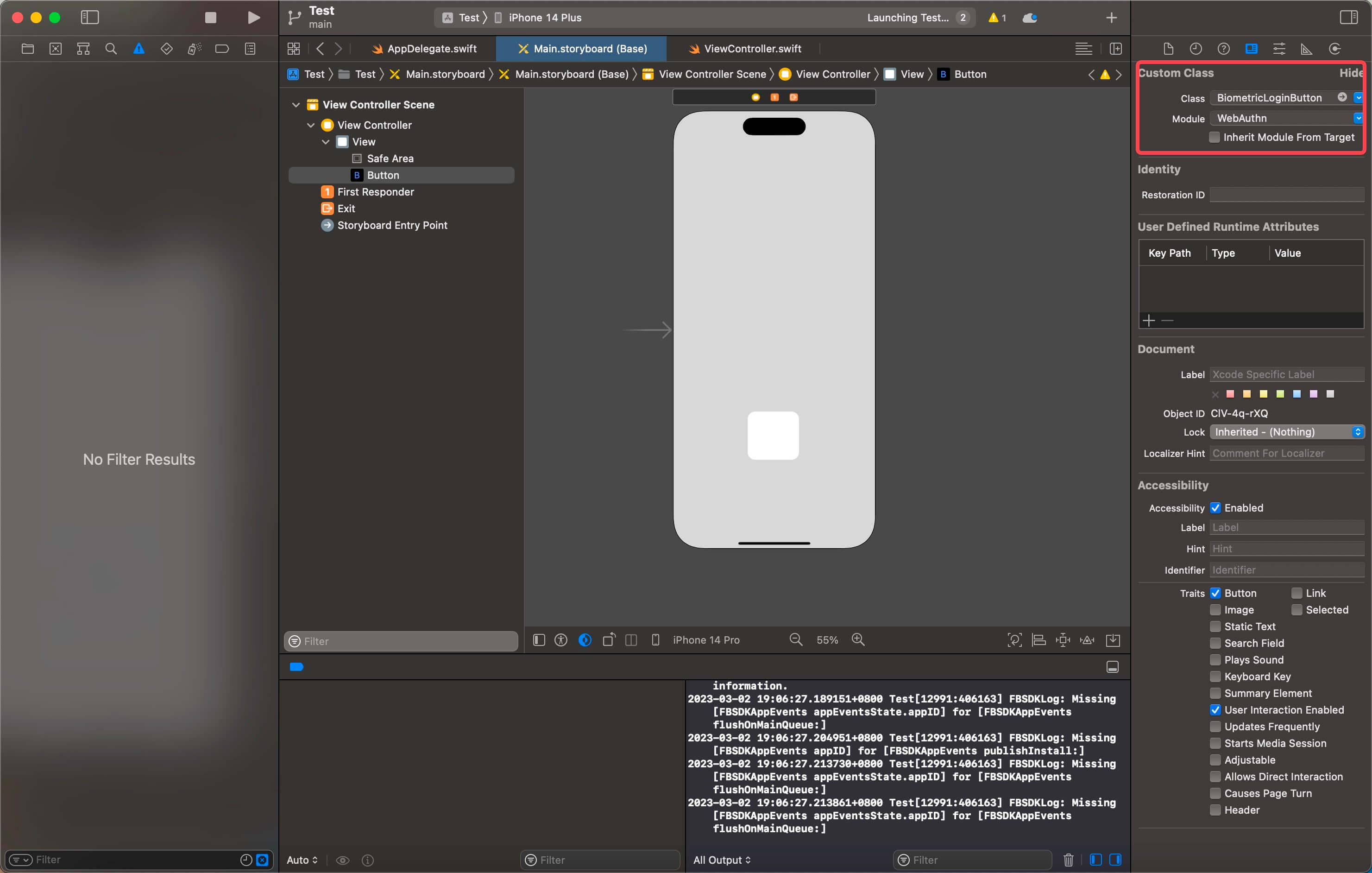 放置一个 Button,并将其类型改为 BiometricLoginButton, Module 修改为 WebAuthn 。