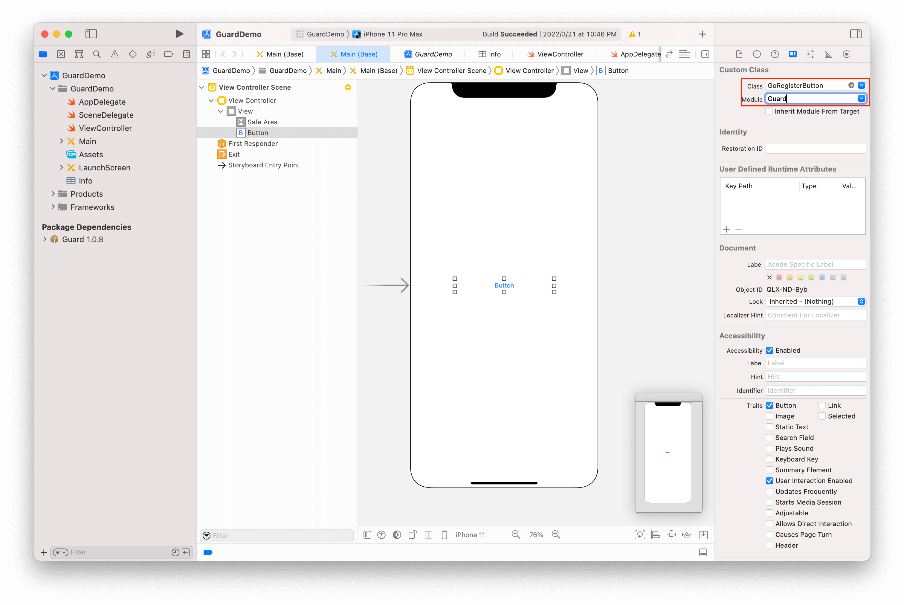 放置一个 Button,并将其类型改为 GoRegisterButton
