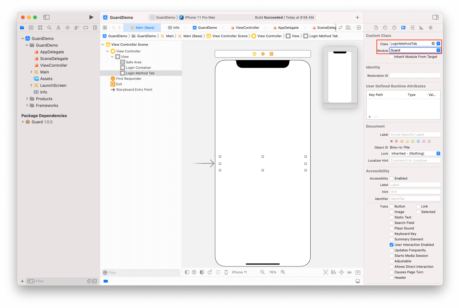 放置一个 UIView,并将其类型改为 LoginMethodTab