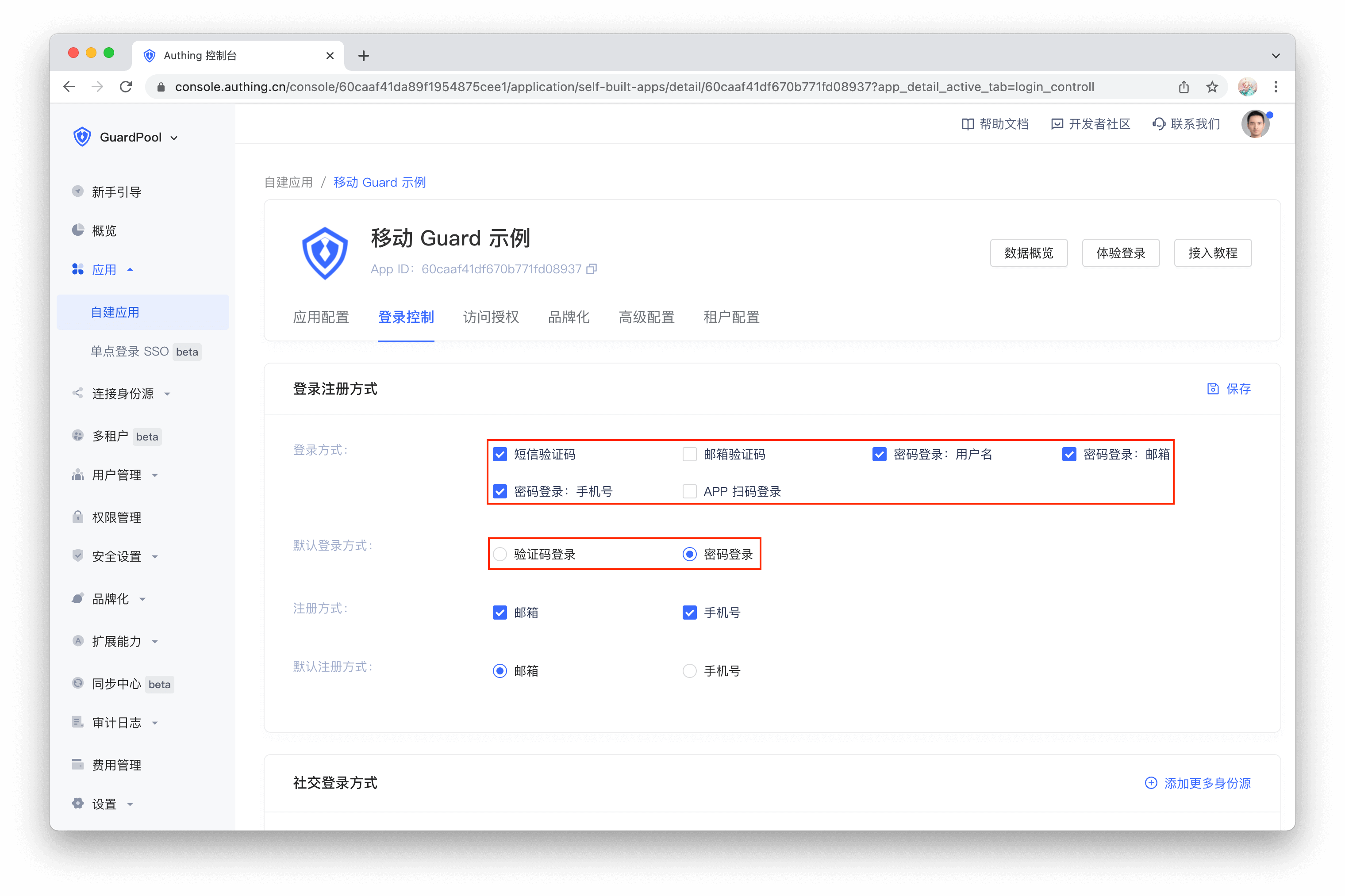 默认登录方式会放到最左边