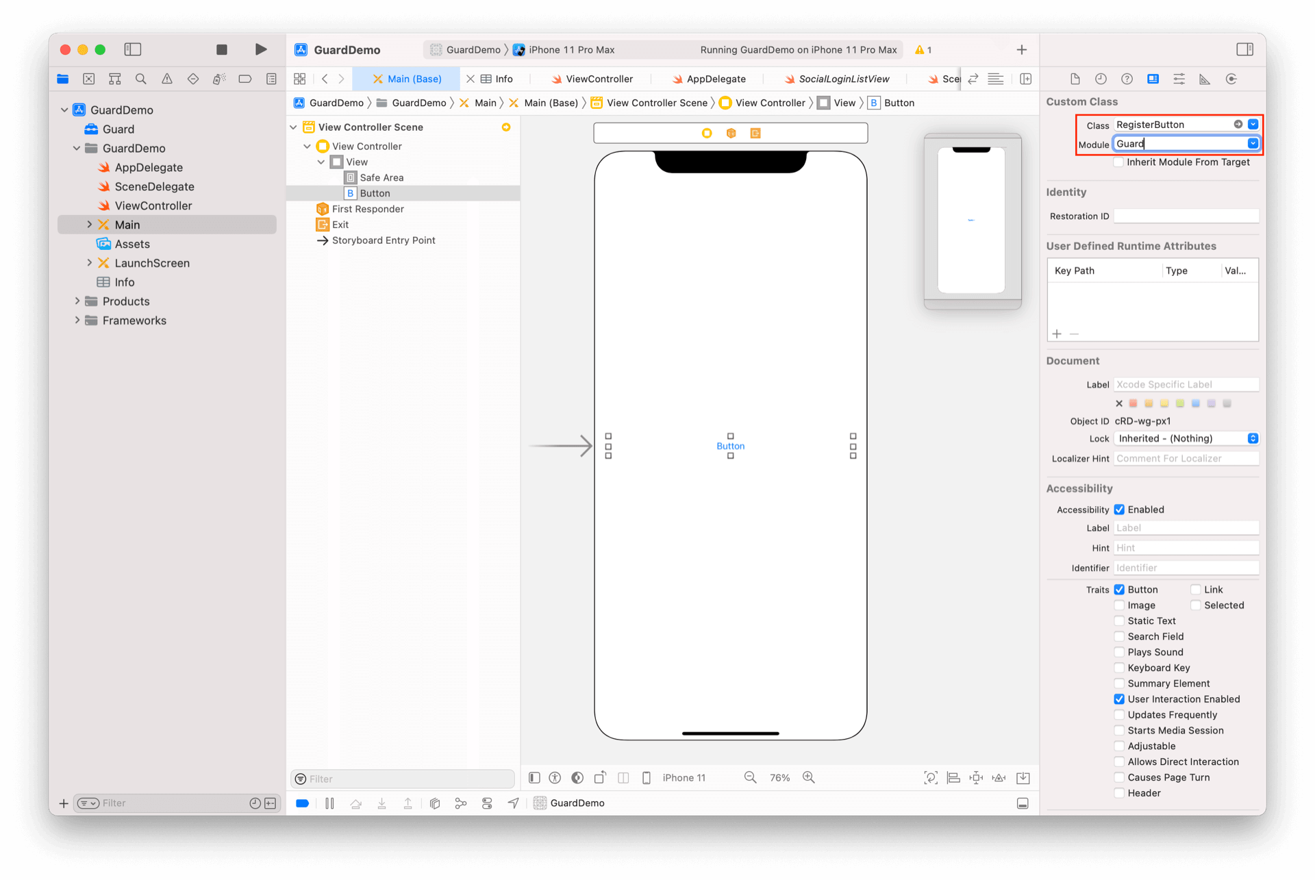 放置一个 Button,并将其类型改为 RegisterButton