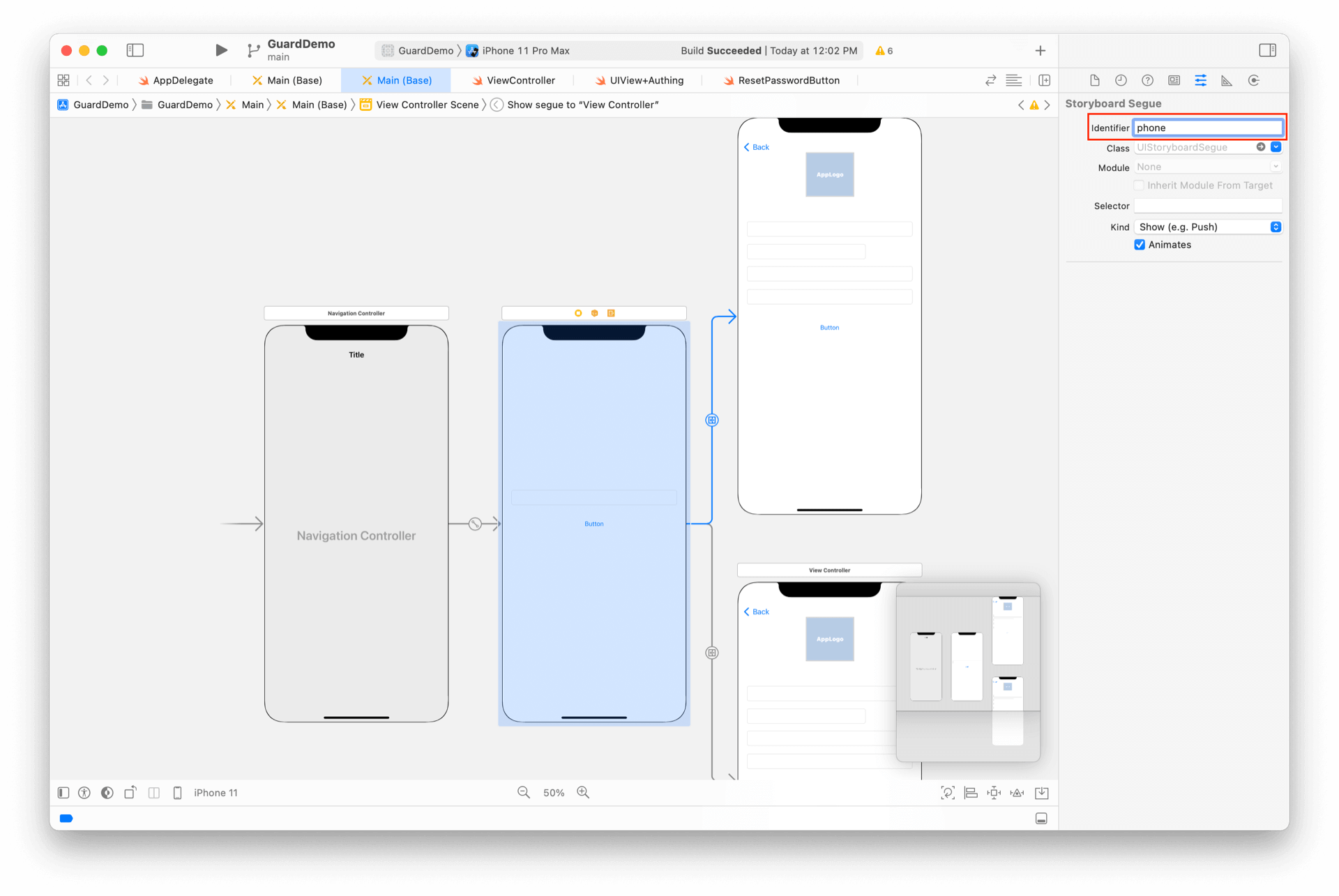 同理,再设置入口页面到邮箱地址重置密码页面 Segue 的 Identifier 为 email