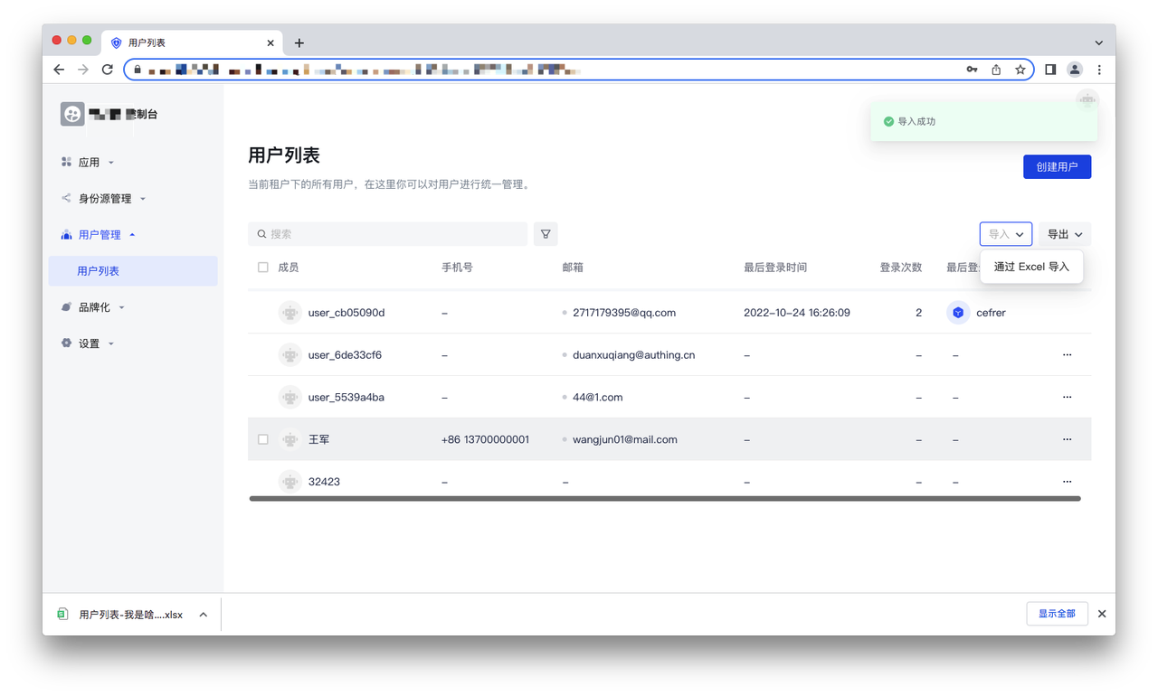 步骤1 点击用户列表右上方的「通过Excel导入」: