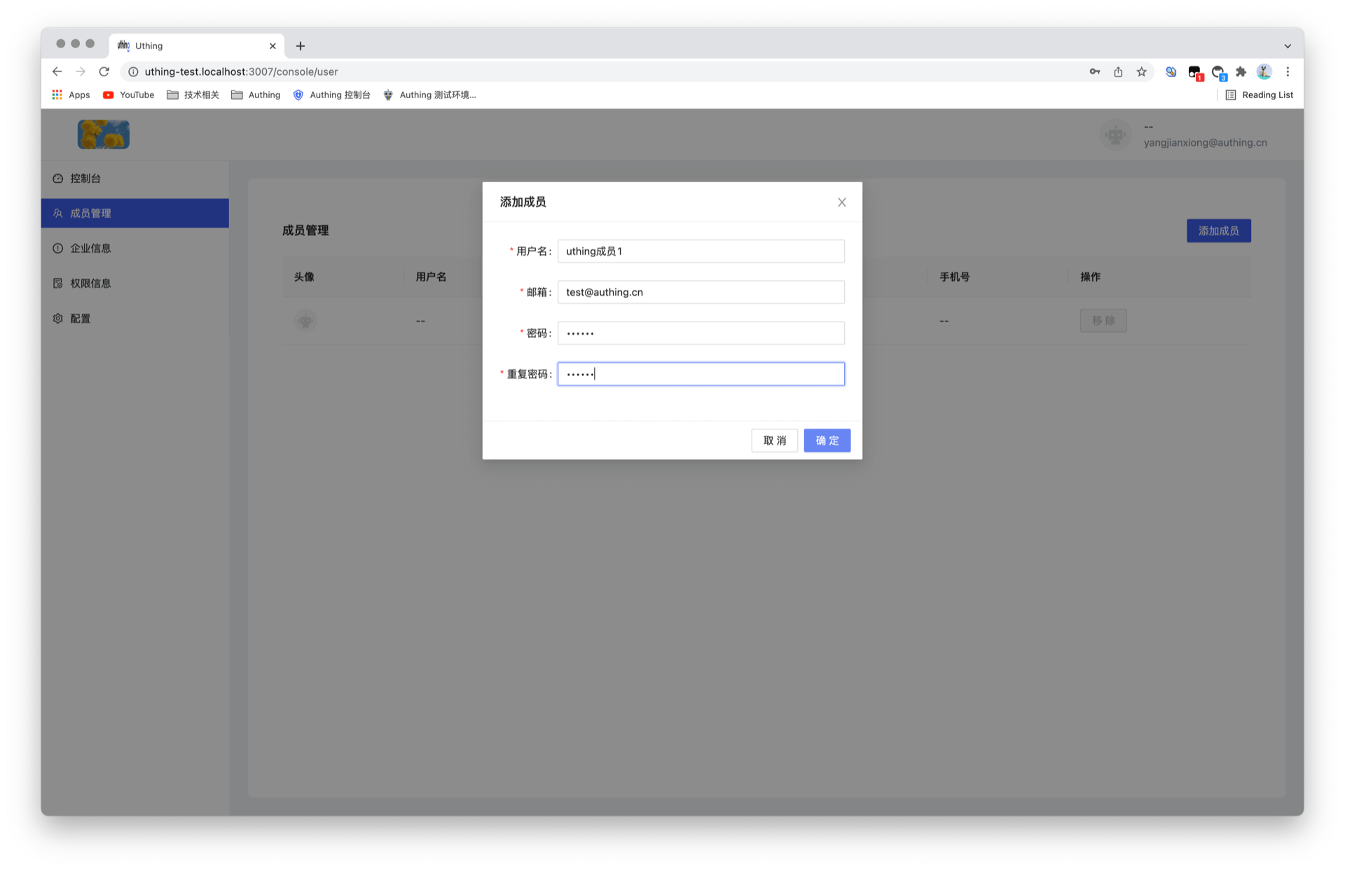输入用户名邮箱等信息点击确定,即可添加成员。
