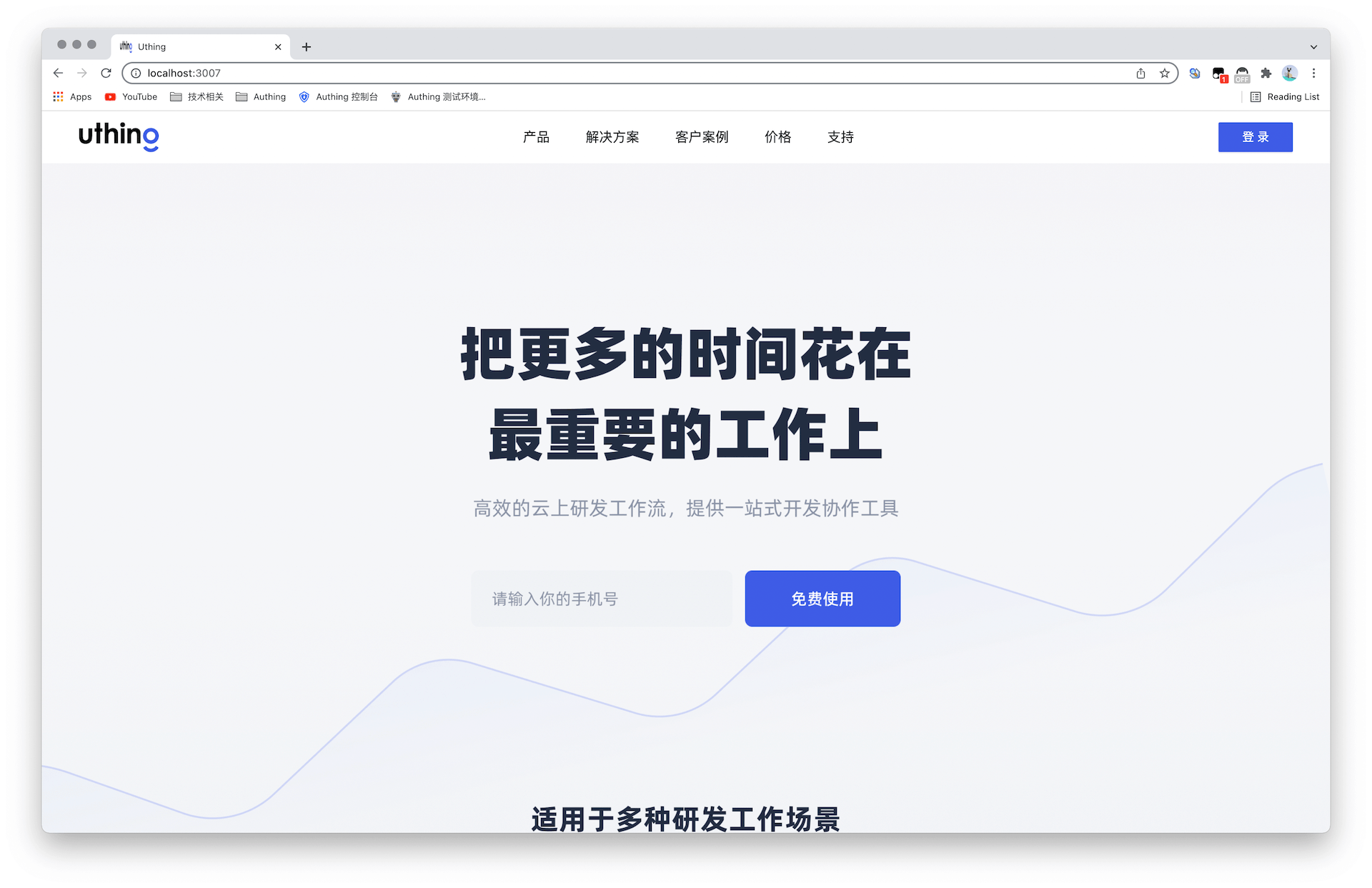 server目录中执行npm run start,打开另一个终端,在client目录下执行npm run start,在浏览器打开http://localhost:3007就能看到 Uthing 界面。