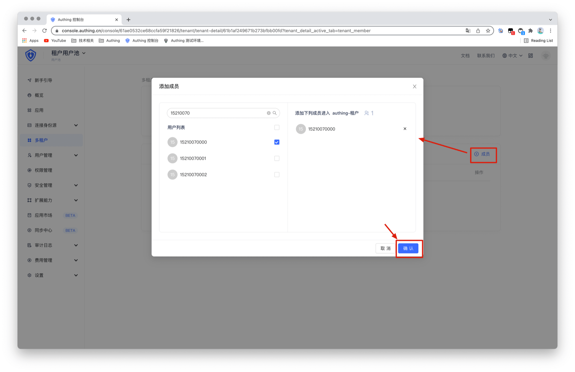 - 管理员将用户加入到租户成员中,然后此用户就可以登录该租户关联的应用。