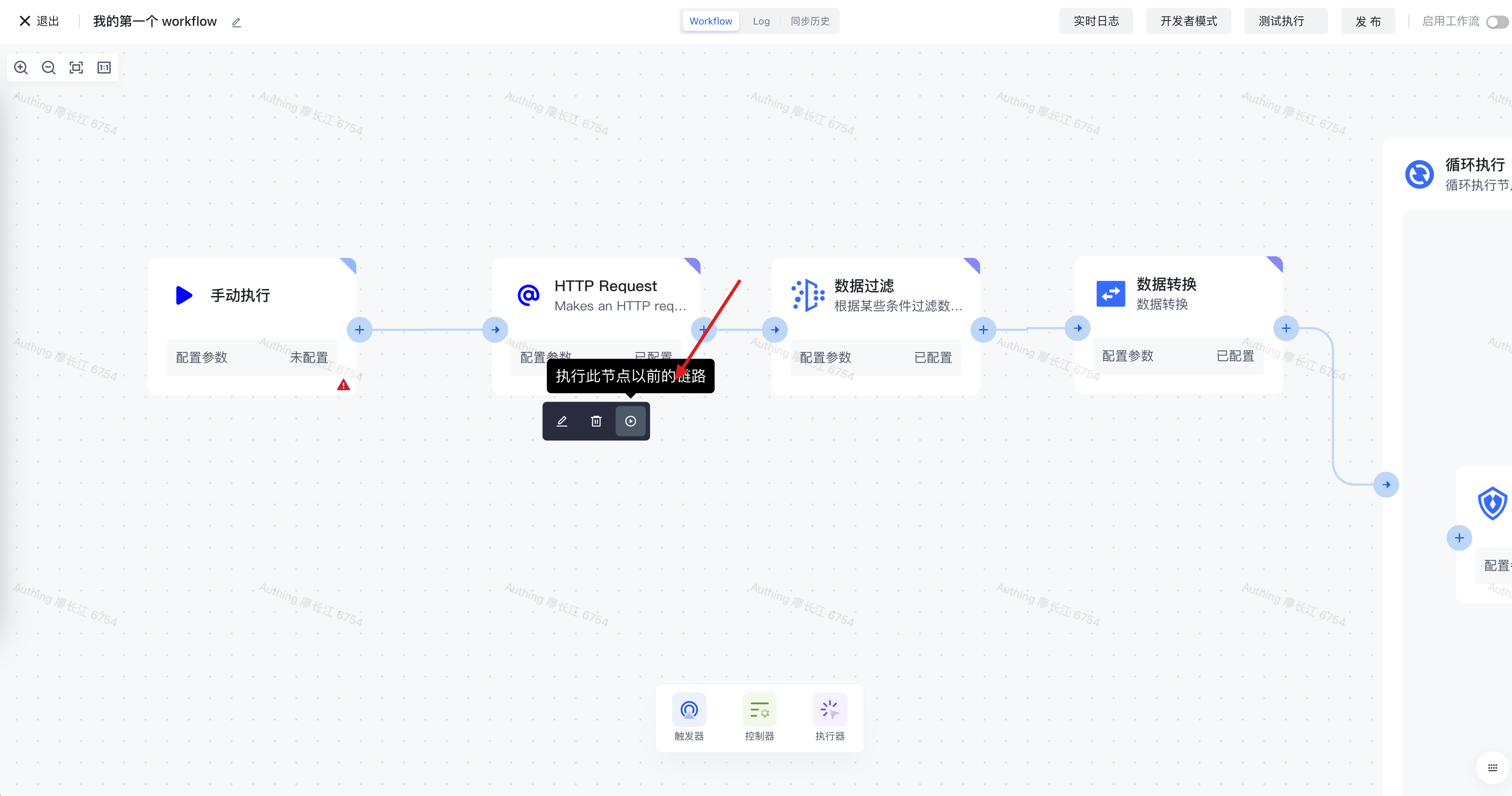 点击 HTTP 节点的「执行此节点以前的链路」按钮: