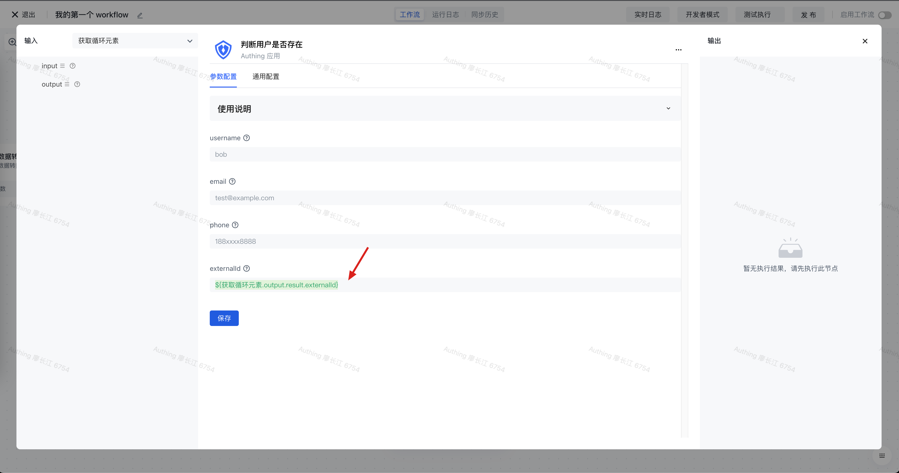 在此我们传入当前元素的 externalId 字段,通过 externalId 来检查当前用户是否存在。