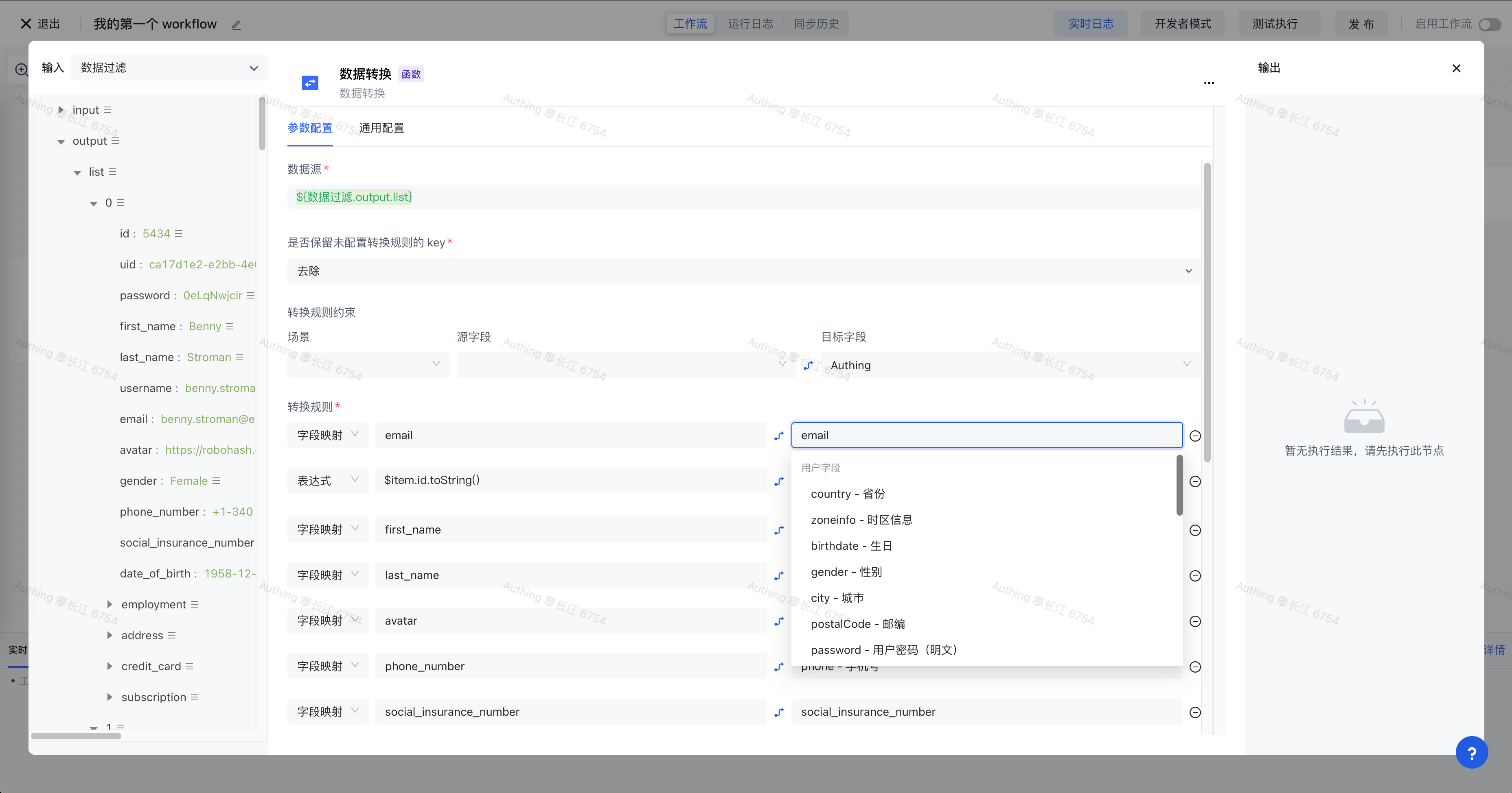¶ 第三步:编写数据转换节点转换用户为 Authing 标准格式
