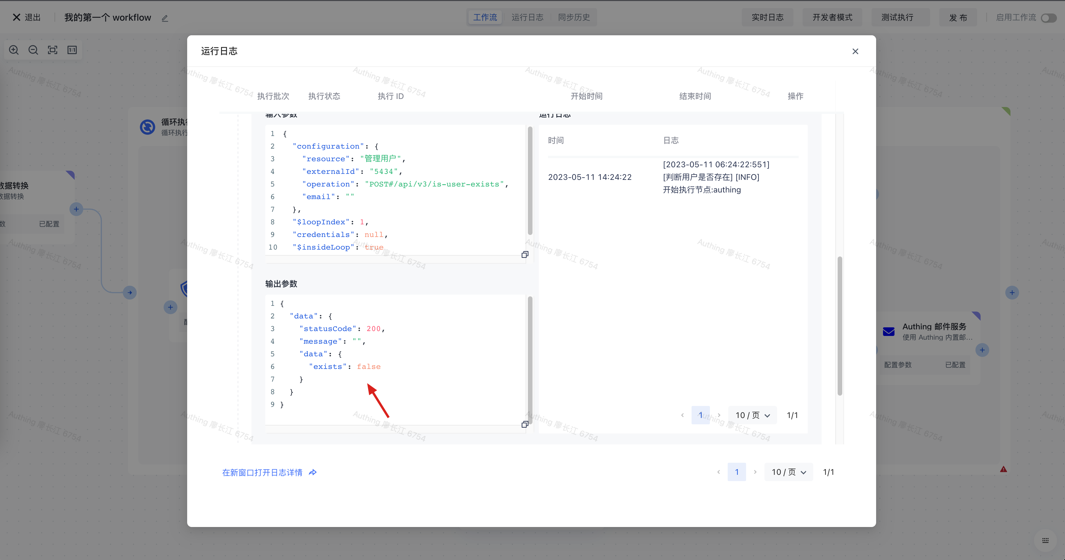 点击执行,查询运行日志可以看到,走的是「创建用户」分支,这符合我们的预期,因为所有用户都还不存在。