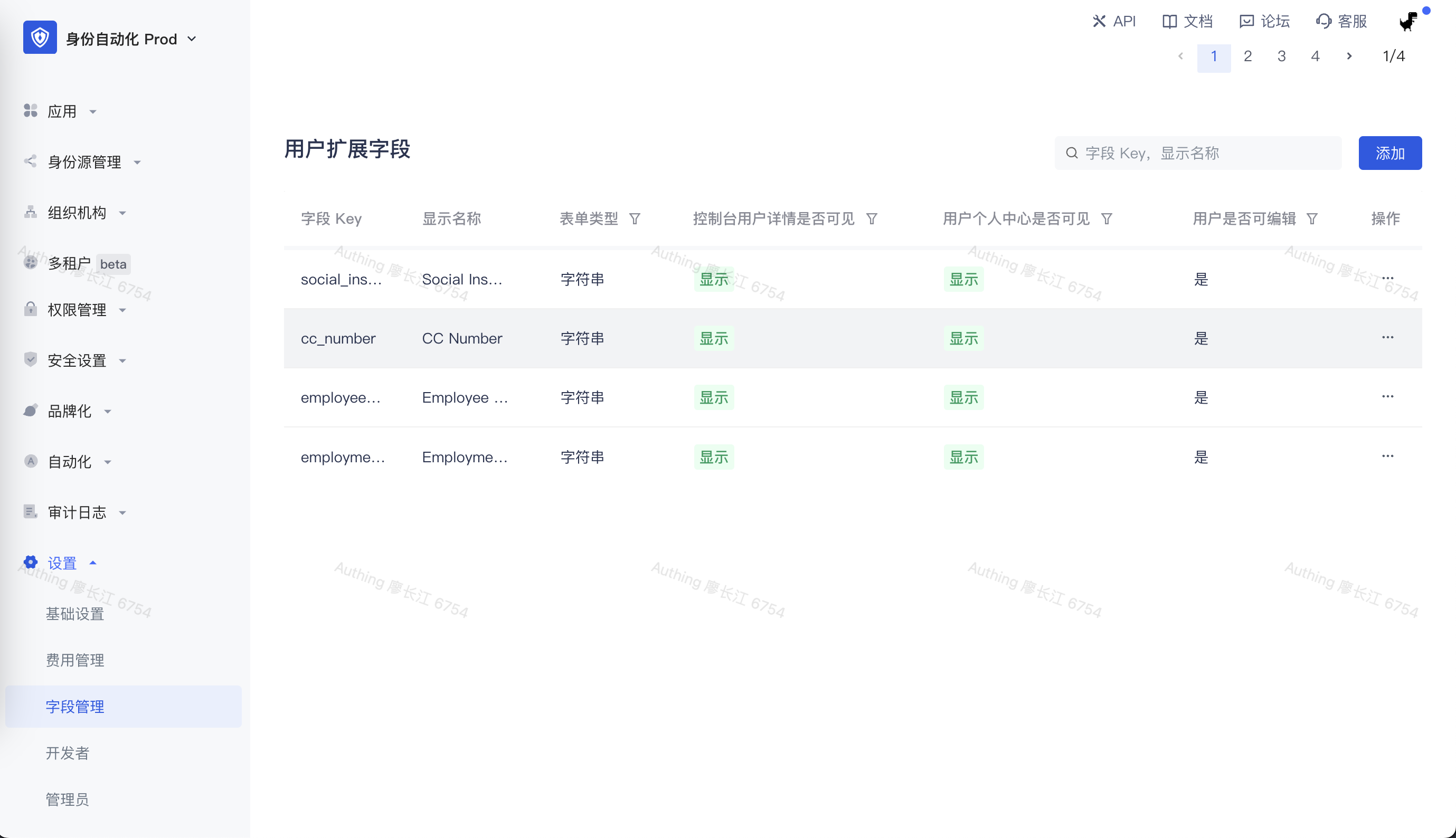 在编写此节点之前,我们先在 Authing 用户池中创建几个自定义字段,后面我们会把此用户数据源的某些字段存储到我们的自定义字段中: