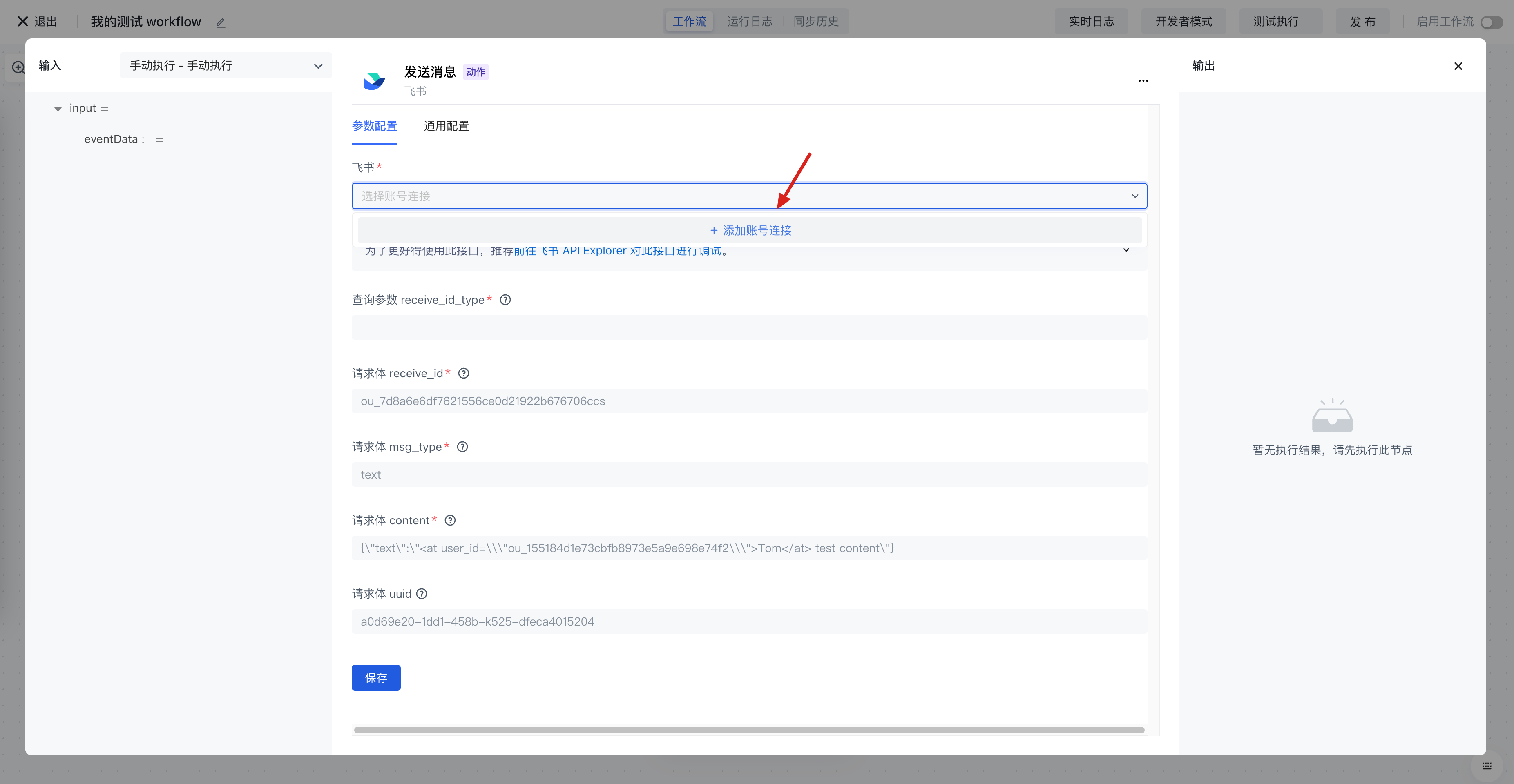 当你在 Authing 身份自动化中使用第三方应用节点时,需要配置第三方应用的账号,你可以在此账号的下拉选择框中创建、删除、修改配置的账号: