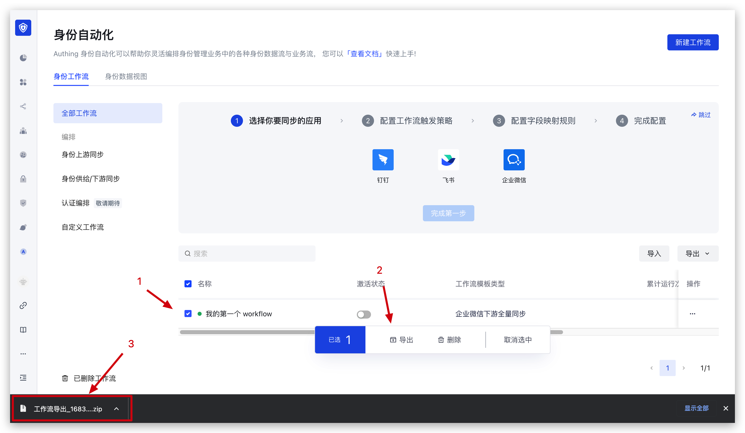1. 勾选需要导出的 workflow